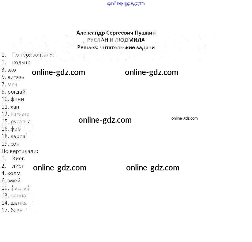 Готовые домашние задания по Литературе за 5 класс Рабочая тетрадь Ланин, Устинова Алгоритм успеха 2017 - Александр Сергеевич Пушкин Руслан и Людмила Часть 1 1