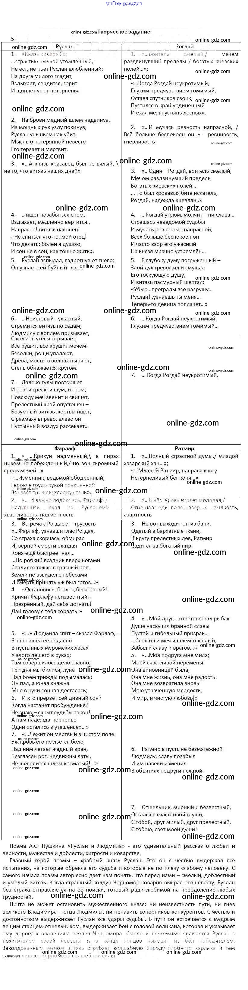 Готовые домашние задания по Литературе за 5 класс Рабочая тетрадь Ланин, Устинова Алгоритм успеха 2017 - Александр Сергеевич Пушкин Руслан и Людмила Часть 1 5