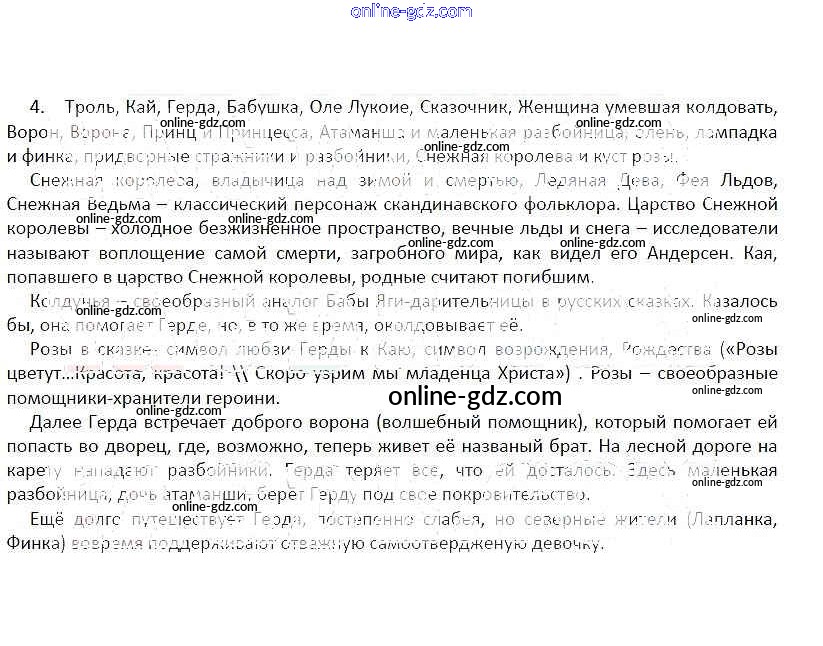 Готовые домашние задания по Литературе за 5 класс Рабочая тетрадь Ланин, Устинова Алгоритм успеха 2017 - Ханс Кристиан Андерсен Снежная королева Часть 1 4