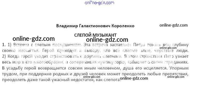 Готовые домашние задания по Литературе за 5 класс Рабочая тетрадь Ланин, Устинова Алгоритм успеха 2017 - Владимир Галактионович Короленко Слепой музыкант Часть 2 1