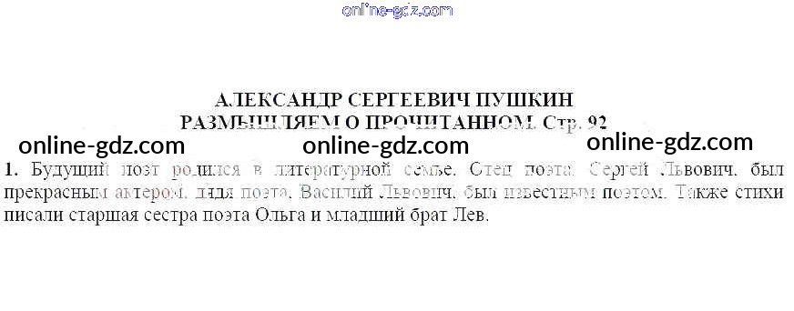 Готовые домашние задания по Литературе за 5 класс Учебник Коровина, Журавлев 2019 - Часть 1 (Страницы) 92