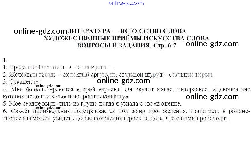 Готовые домашние задания по Литературе за 5 класс Учебник-хрестоматия Курдюмова Вертикаль 2016 - Вопросы и задания на стр. 6-7 Часть 1 1