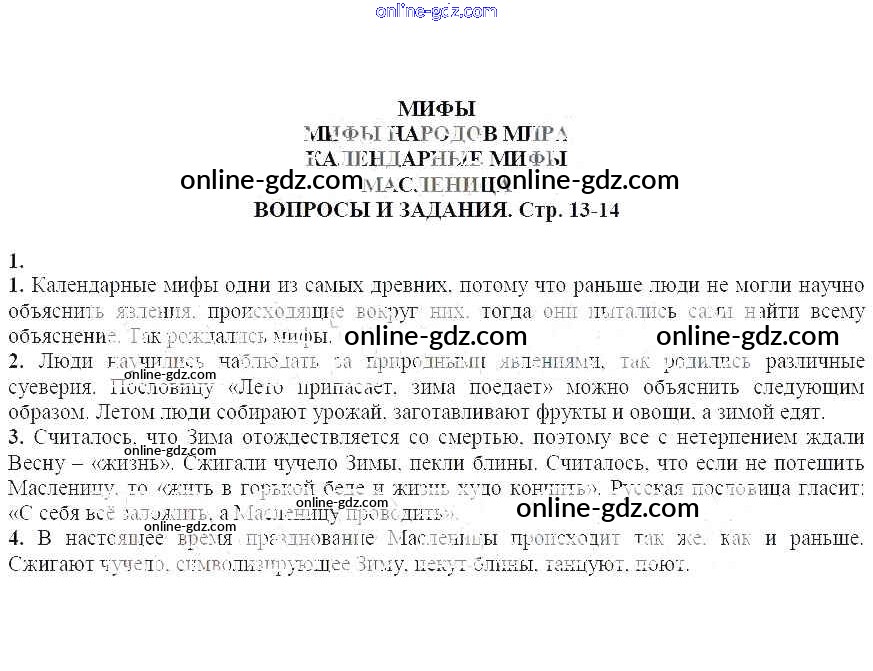 Готовые домашние задания по Литературе за 5 класс Учебник-хрестоматия Курдюмова Вертикаль 2016 - Вопросы и задания на стр. 13-14 Часть 1 1