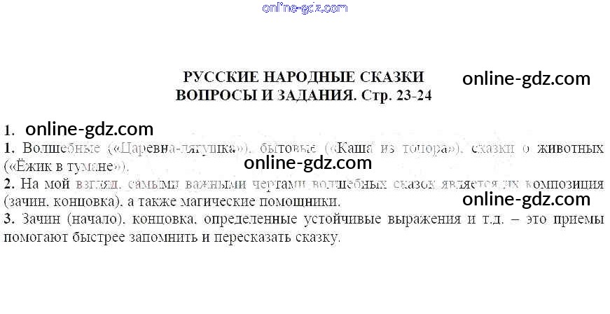 Готовые домашние задания по Литературе за 5 класс Учебник-хрестоматия Курдюмова Вертикаль 2016 - Вопросы и задания на стр. 23-24 Часть 1 1