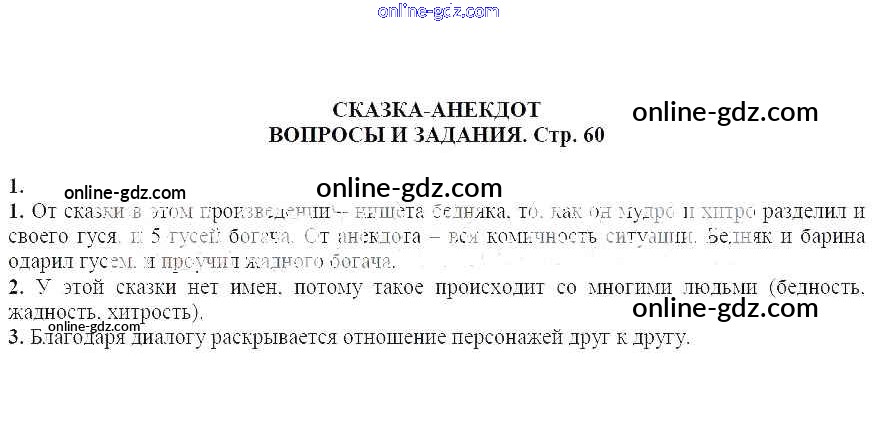 Готовые домашние задания по Литературе за 5 класс Учебник-хрестоматия Курдюмова Вертикаль 2016 - Вопросы и задания на стр. 60 Часть 1 1