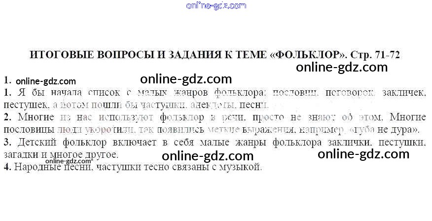 Готовые домашние задания по Литературе за 5 класс Учебник-хрестоматия Курдюмова Вертикаль 2016 - Итоговые вопросы и задания на стр. 71-72 Часть 1 1