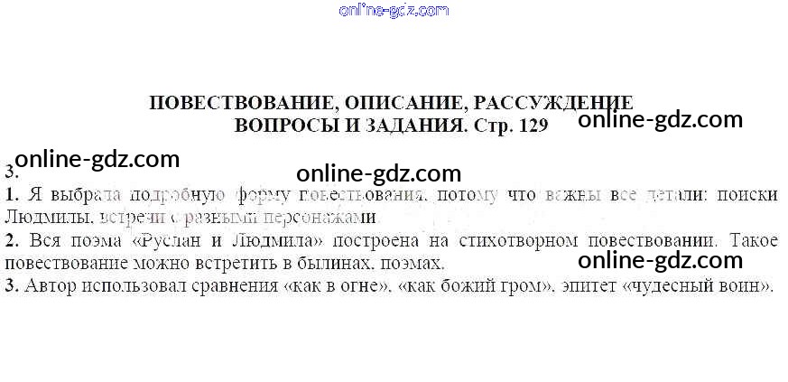 Готовые домашние задания по Литературе за 5 класс Учебник-хрестоматия Курдюмова Вертикаль 2016 - Вопросы и задания на стр. 129 Часть 1 3