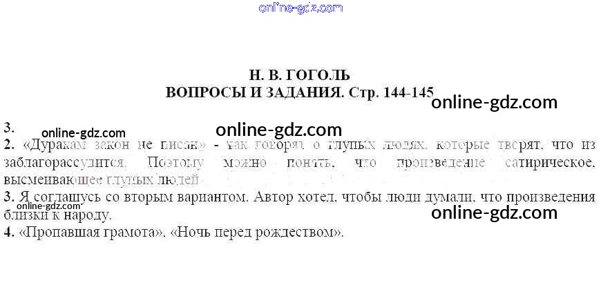 Готовые домашние задания по Литературе за 5 класс Учебник-хрестоматия Курдюмова Вертикаль 2016 - Вопросы и задания на стр. 144-145 Часть 1 3