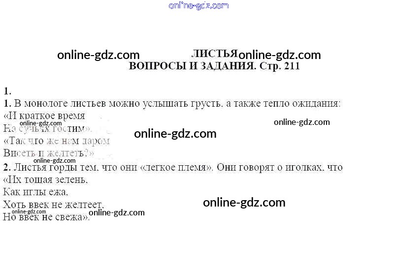 Готовые домашние задания по Литературе за 5 класс Учебник-хрестоматия Курдюмова Вертикаль 2016 - Вопросы и задания на стр. 211 Часть 1 1
