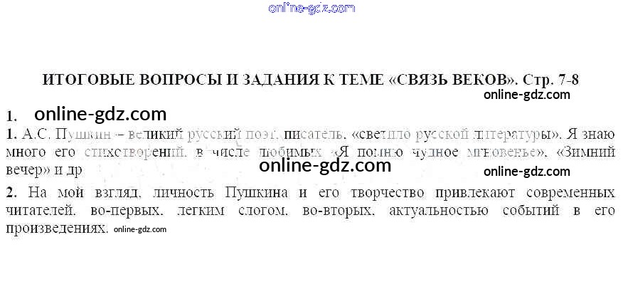 класс, от простых до сложных. Мы стремимся предоставить нашим пользователям максимально точные и полезные ответы к Учебнику-хрестоматии Курдюмова Вертикаль - Итоговые вопросы и задания на стр. 7-8 Часть 2 1, поэтому мы постоянно работаем над улучшением нашего контента. Мы всегда готовы помочь!