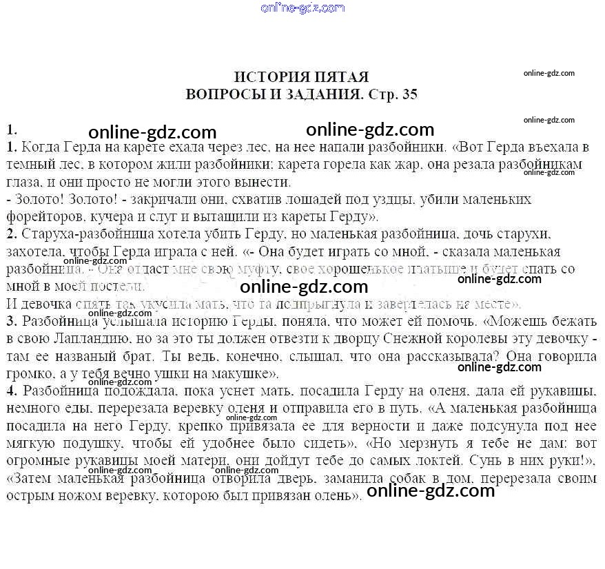 Готовые домашние задания по Литературе за 5 класс Учебник-хрестоматия Курдюмова Вертикаль 2016 - Вопросы и задания на стр. 35 Часть 2 1