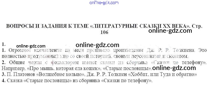 Готовые домашние задания по Литературе за 5 класс Учебник-хрестоматия Курдюмова Вертикаль 2016 - Вопросы и задания на стр. 106 Часть 2 1