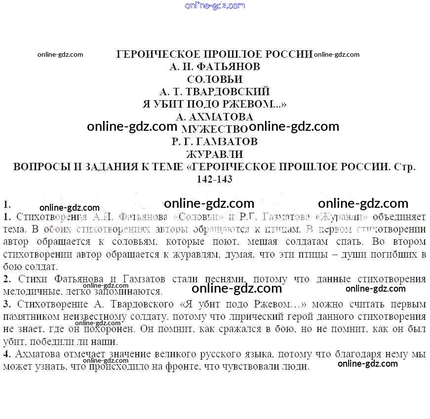 Готовые домашние задания по Литературе за 5 класс Учебник-хрестоматия Курдюмова Вертикаль 2016 - Вопросы и задания на стр. 142-143 Часть 2 1