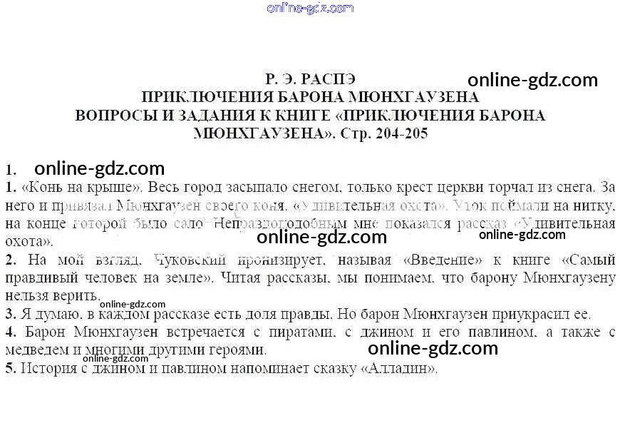 Готовые домашние задания по Литературе за 5 класс Учебник-хрестоматия Курдюмова Вертикаль 2016 - Вопросы и задания на стр. 204-205 Часть 2 1