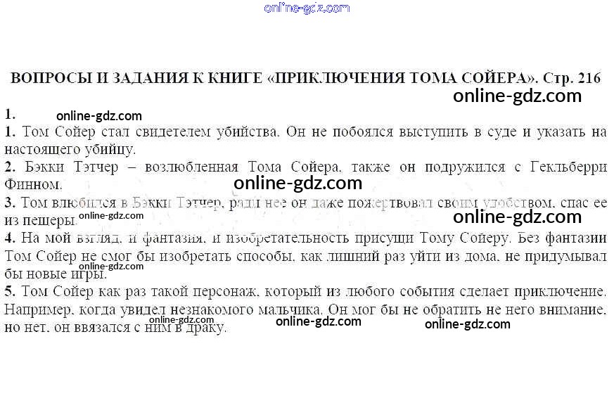 Готовые домашние задания по Литературе за 5 класс Учебник-хрестоматия Курдюмова Вертикаль 2016 - Вопросы и задания на стр. 216 Часть 2 1