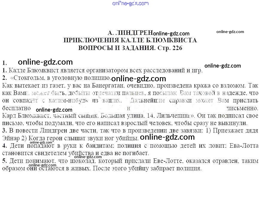Готовые домашние задания по Литературе за 5 класс Учебник-хрестоматия Курдюмова Вертикаль 2016 - Вопросы и задания на стр. 226 Часть 2 1