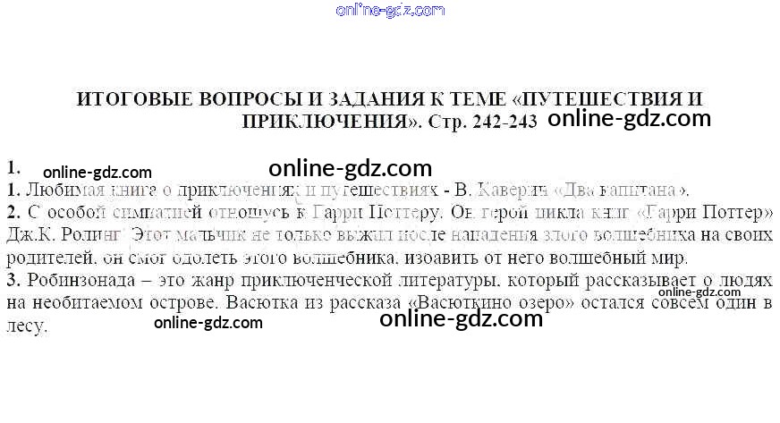 Готовые домашние задания по Литературе за 5 класс Учебник-хрестоматия Курдюмова Вертикаль 2016 - Итоговые вопросы и задания на стр. 242-243 Часть 2 1