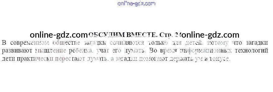 класс, от простых до сложных. Мы стремимся предоставить нашим пользователям максимально точные и полезные ответы к Учебнику Ланин, Устинова - Загадка Часть 1 Обсудим вместе (стр. 24), поэтому мы постоянно работаем над улучшением нашего контента. Мы всегда готовы помочь!