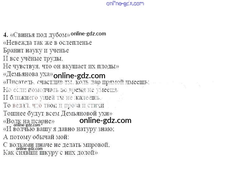 Готовые домашние задания по Литературе за 5 класс Учебник Ланин, Устинова 2016 - Решаем читательские задачи (стр.67) Свинья под дубом. Демьянова ухо. Волк на псарне 4