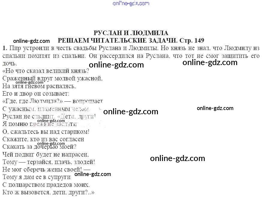 часть 1 / Руслан и Людмила / Решаем читательские задачи (стр.149) / 1