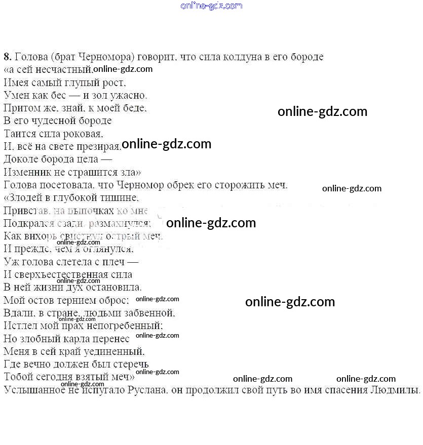Готовые домашние задания по Литературе за 5 класс Учебник Ланин, Устинова 2016 - Решаем читательские задачи (стр.149) Руслан и Людмила 8