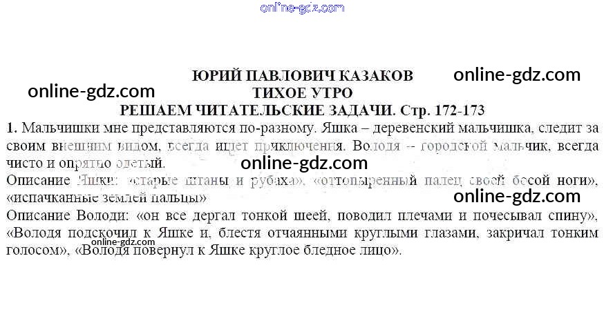 Готовые домашние задания по Литературе за 5 класс Учебник Ланин, Устинова 2016 - Решаем читательские задачи (стр.172-173) Юрий Павлович Казаков. Тихое утро 1