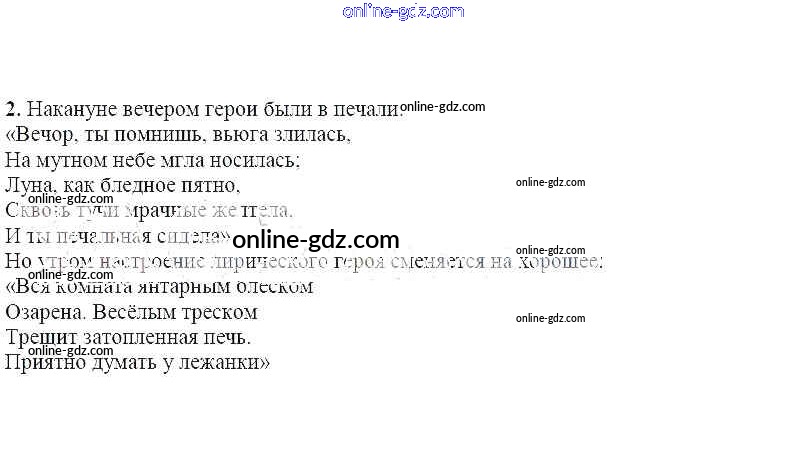 Готовые домашние задания по Литературе за 5 класс Учебник Ланин, Устинова 2016 - Решаем читательские задачи (стр.295) Александр Сергеевич Пушкин. Зимнее утро 2