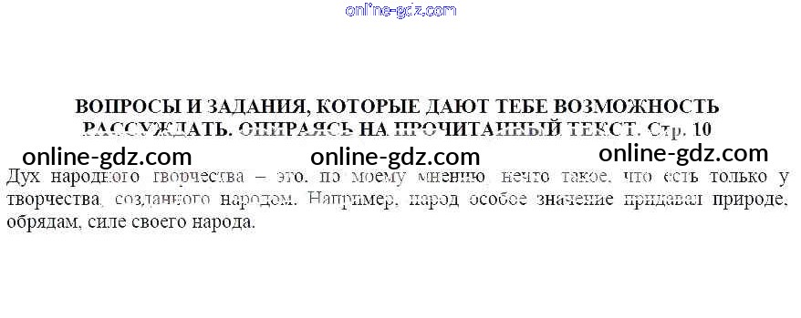 Готовые домашние задания по Литературе за 5 класс Учебник Москвин Алгоритм успеха 2020 - Фольклор Часть 1 Вопросы и задания, которые дают тебе возможность рассуждать, опираясь на прочитанный текст (стр.10)