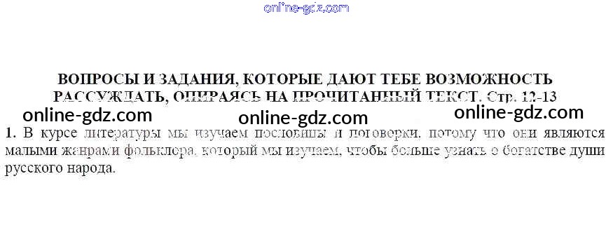 Готовые домашние задания по Литературе за 5 класс Учебник Москвин Алгоритм успеха 2020 - Вопросы и задания, которые дают тебе возможность рассуждать, опираясь на прочитанный текст (стр. 12-13) Пословицы и поговорки 1