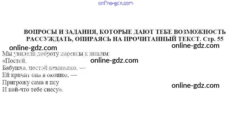 Вопросы и задания, которые дают тебе возможность рассуждать, опираясь на прочитанный текст (стр. 55)