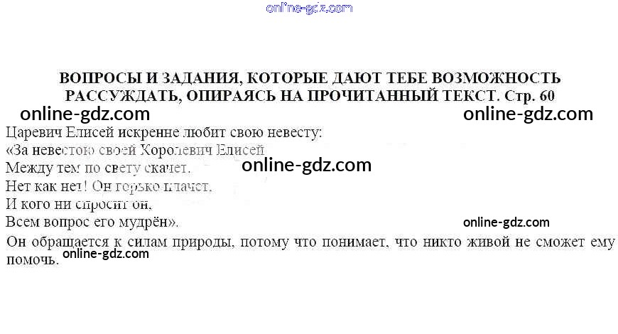 Вопросы и задания, которые дают тебе возможность рассуждать, опираясь на прочитанный текст (стр. 60)