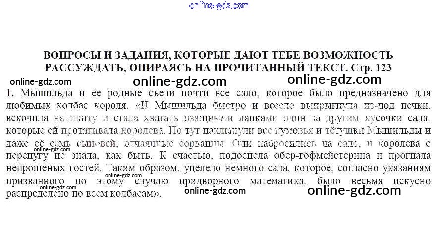 Вопросы и задания, которые дают тебе возможность рассуждать, опираясь на прочитанный текст (стр. 123)