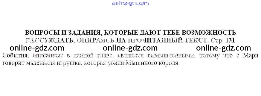 Готовые домашние задания по Литературе за 5 класс Учебник Москвин Алгоритм успеха 2020 - Щелкунчик и мышиный король Часть 1 Вопросы и задания, которые дают тебе возможность рассуждать, опираясь на прочитанный текст (стр. 131)