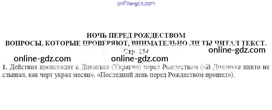 Готовые домашние задания по Литературе за 5 класс Учебник Москвин Алгоритм успеха 2020 - Вопросы, которые проверяют, внимательно ли ты читал текст (стр. 154) Ночь перед Рождеством 1