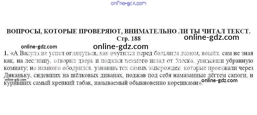 Готовые домашние задания по Литературе за 5 класс Учебник Москвин Алгоритм успеха 2020 - Вопросы, которые проверяют, внимательно ли ты читал текст (стр. 188) Ночь перед Рождеством 1