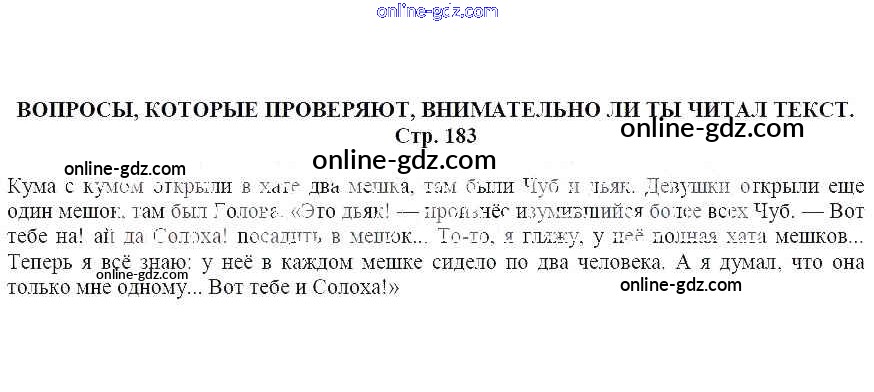 Готовые домашние задания по Литературе за 5 класс Учебник Москвин Алгоритм успеха 2020 - Ночь перед Рождеством Часть 1 Вопросы, которые проверяют, внимательно ли ты читал текст (стр. 183)