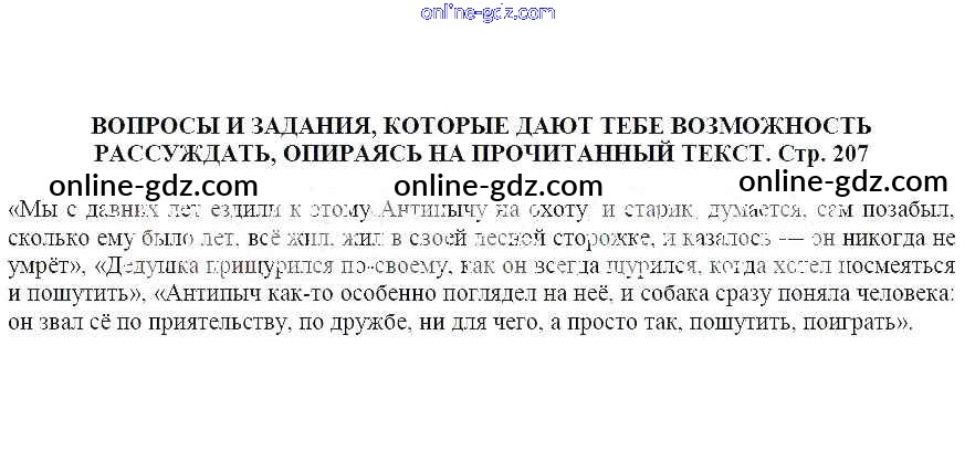 Вопросы и задания, которые дают тебе возможность рассуждать, опираясь на прочитанный текст (стр. 207)