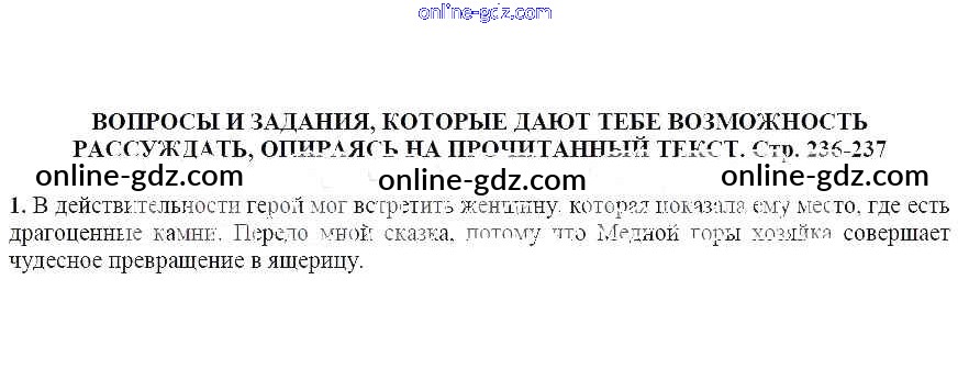 Готовые домашние задания по Литературе за 5 класс Учебник Москвин Алгоритм успеха 2020 - Вопросы и задания, которые дают тебе возможность рассуждать, опираясь на прочитанный текст (стр. 237) Медной горы хозяйка 1