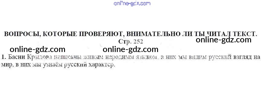 Готовые домашние задания по Литературе за 5 класс Учебник Москвин Алгоритм успеха 2020 - Вопросы, которые проверяют, внимательно ли ты читал текст (стр. 252) Иван Андреевич Крылов 1