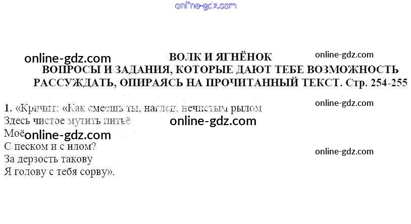 Готовые домашние задания по Литературе за 5 класс Учебник Москвин Алгоритм успеха 2020 - Вопросы и задания, которые дают тебе возможность рассуждать, опираясь на прочитанный текст (стр. 254-255) Волк и ягненок 1
