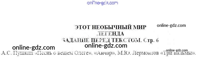 Готовые домашние задания по Литературе за 5 класс Учебник Москвин Алгоритм успеха 2020 - Этот необычный мир. Легенда Часть 2 Задание перед текстом (стр. 6)