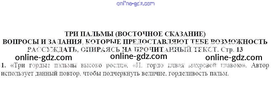 Готовые домашние задания по Литературе за 5 класс Учебник Москвин Алгоритм успеха 2020 - Вопросы и задания, которые дают тебе возможность рассуждать, опираясь на прочитанный текст (стр. 13) Три пальмы (восточное сказание) 1