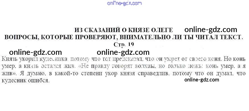 Готовые домашние задания по Литературе за 5 класс Учебник Москвин Алгоритм успеха 2020 - Из сказаний о Князе Олеге Часть 2 Вопросы, которые проверяют, внимательно ли ты читал текст (стр. 19)