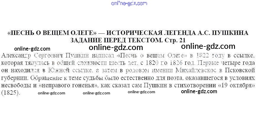 часть 2 / Песнь о вещем Олеге — историческая легенда А.С. Пушкина / Задание перед текстом (стр. 21)