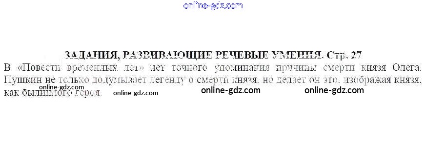 Готовые домашние задания по Литературе за 5 класс Учебник Москвин Алгоритм успеха 2020 - Песнь о вещем Олеге Часть 2 Задания, развивающие речевые умения (стр. 27)