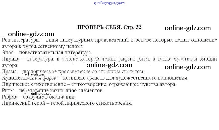Готовые домашние задания по Литературе за 5 класс Учебник Москвин Алгоритм успеха 2020 - Лирическое стихотворение Часть 2 Проверь себя (стр. 32)