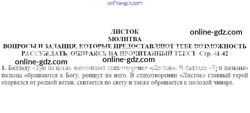 Готовые домашние задания по Литературе за 5 класс Учебник Москвин Алгоритм успеха 2020 - Вопросы и задания, которые дают тебе возможность рассуждать, опираясь на прочитанный текст (стр. 41-42) Листок. Молитва 1