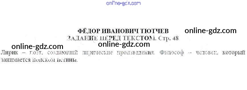 часть 2 / Федор Иванович Тютчев / Задание перед текстом (стр. 48)
