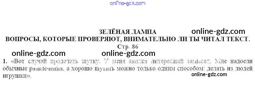 Готовые домашние задания по Литературе за 5 класс Учебник Москвин Алгоритм успеха 2020 - Вопросы, которые проверяют, внимательно ли ты читал текст (стр. 86) Зеленая лампа 1
