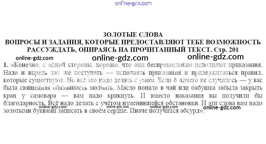 часть 2 / Золотые слова / Вопросы и задания, которые дают тебе возможность рассуждать, опираясь на прочитанный текст (стр. 201) / 1